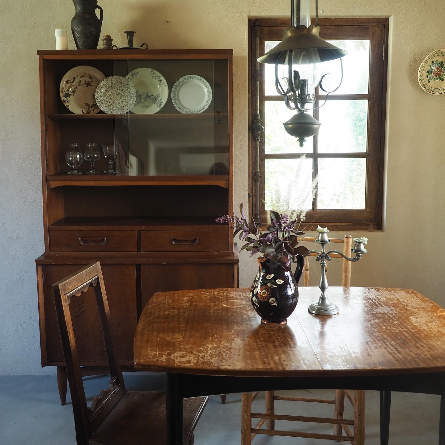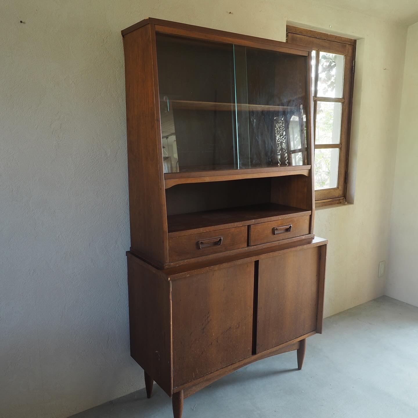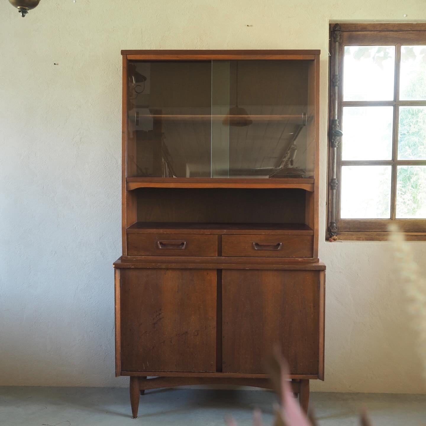 あたたかみのある色合いのヴィンテージカップボードです。